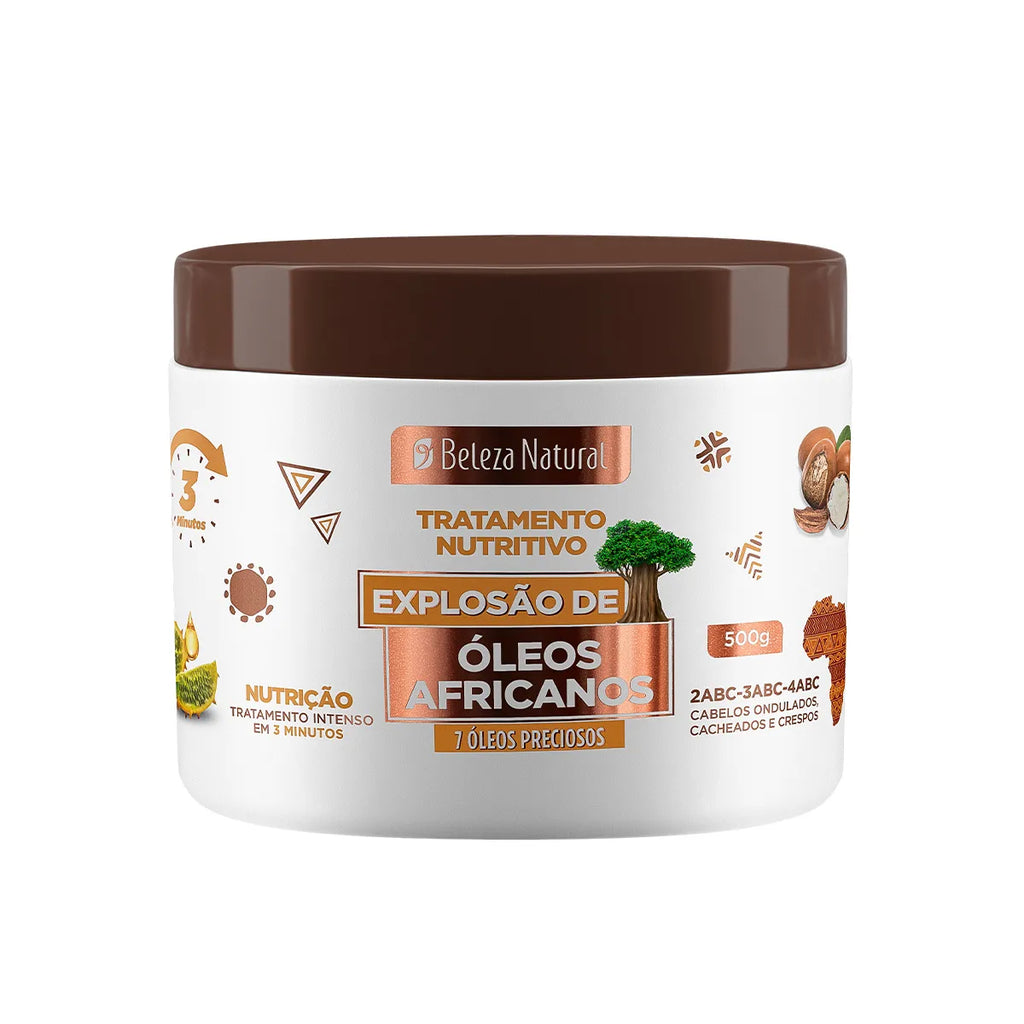 O tratamento intensivo que seu cabelo tanto precisa, com 7 óleos africanos para hidratação profunda, brilho e definição dos fios.