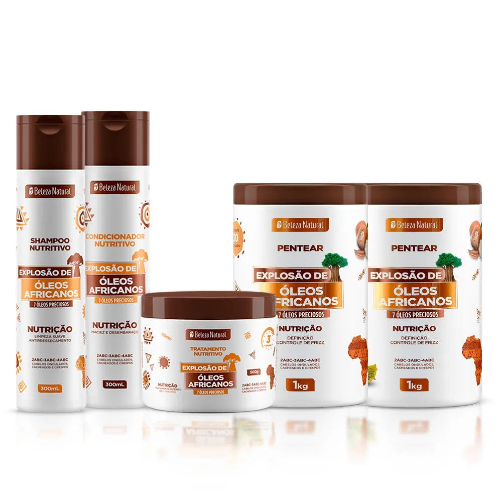 Um kit de nutrição intensiva formulado com 7 óleos africanos para promover hidratação profunda, controle do frizz, e cabelos mais brilhantes, macios e saudáveis.