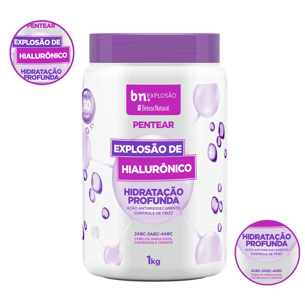 O Creme de Pentear Explosão de Hialurônico utiliza a tecnologia de nanopartículas do ácido hialurônico, agindo dentro da fibra capilar para proporcionar regeneração e hidratação duradoura. Ele deixa os cabelos macios, hidratados e com muito brilho, enquanto controla o frizz e o ressecamento. Ideal para quem deseja devolver elasticidade e movimento a fios opacos e quebrados. Um efeito condicionante que deixa os cachos e cabelos crespos ainda mais perfeitos, com uma explosão de hidratação.